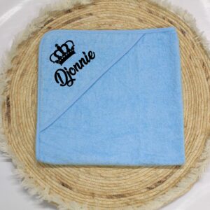 Omdat baby’s hun warmte snel verliezen via het hoofdje is deze badcape voorzien van een mutsje/capuchon om je kindje lekker warm te houden na het badderen. Eenmaal op de commode aangekomen kan je je kindje ermee afdrogen. Badcape’s zijn er in wit, roze en blauw en worden bedrukt in kleur naar keuze.