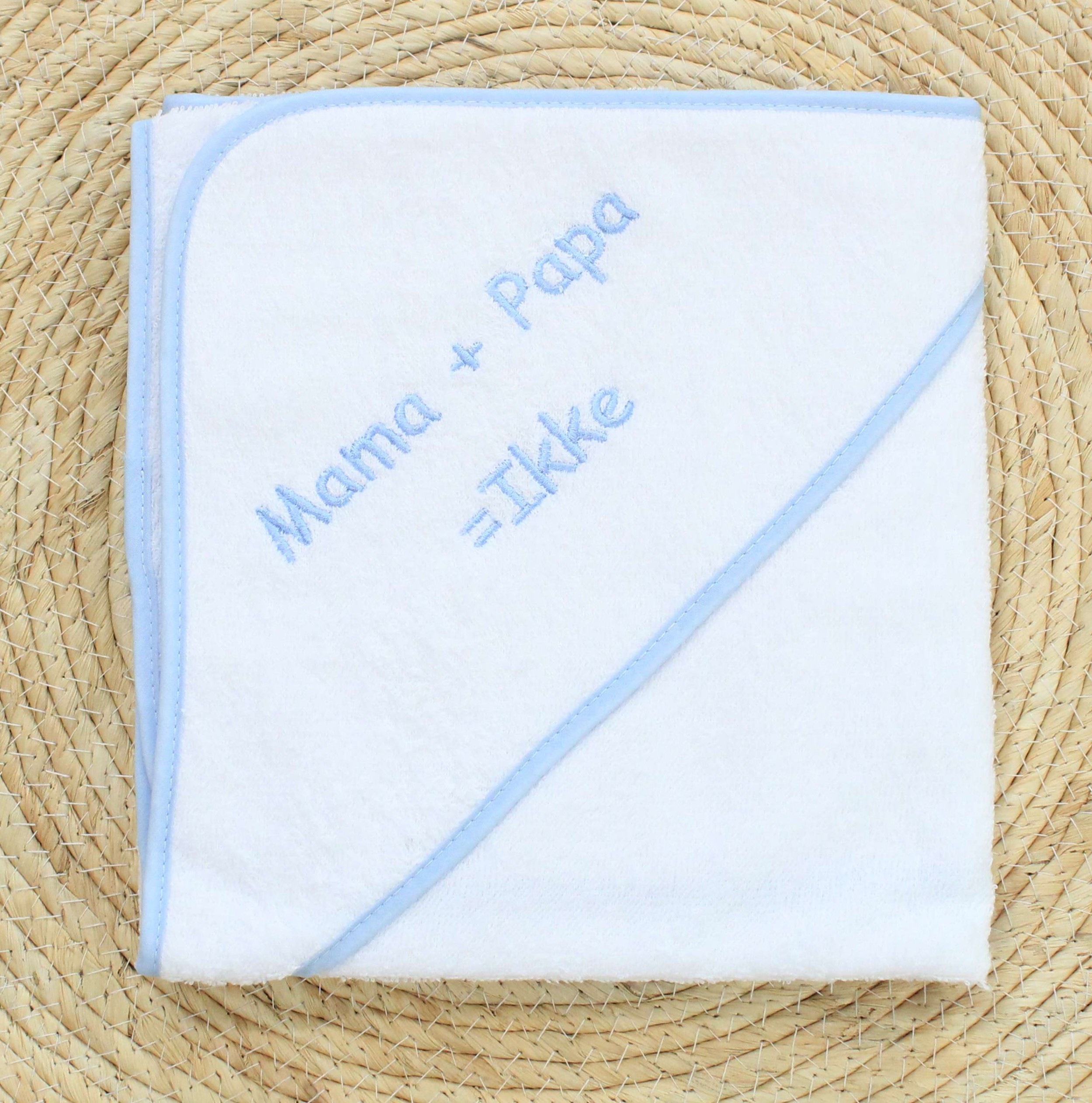 Deze badcape van La Petite Couronne gebruik je om jouw kindje mee af te drogen en in te wikkelen na het badderen. Hij is gemaakt van heerlijk zacht katoen. De muts bevat de tekst Mama + papa=ikke. De cape houdt je baby warm en dankzij de muts blijft het hoofdje ook lekker warm.