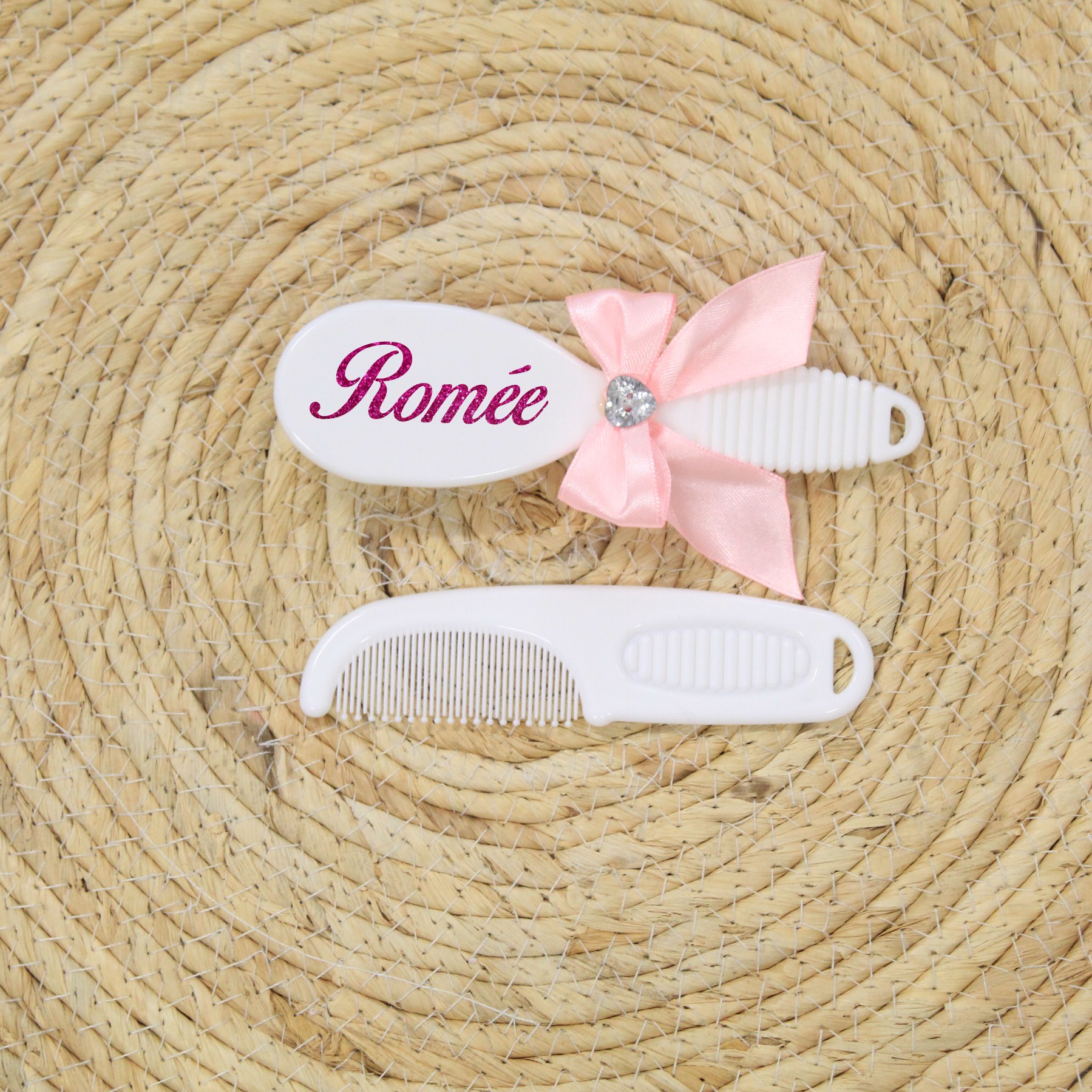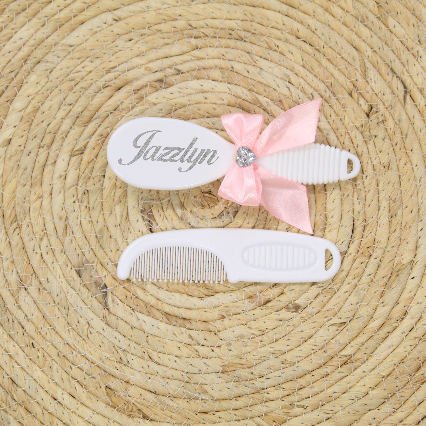 Het kammetje maakt het setje compleet en de naam en schattige strik zorgt voor een lieve uitstraling, perfect voor je babymeisje.