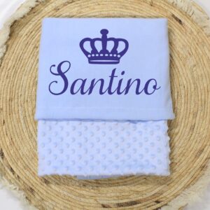 Dekentje wordt voorzien van naam en kroon gedrukt in een kleur naar keuze.
