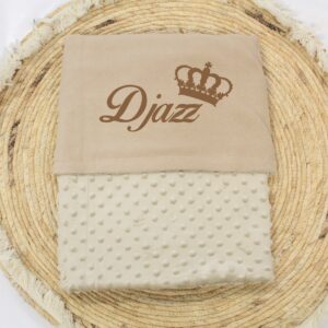 Dekentje wordt voorzien van naam en kroon gedrukt in een kleur naar keuze.