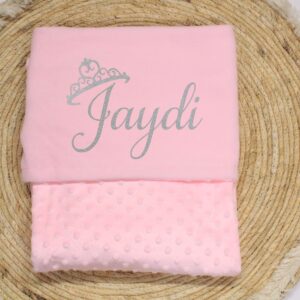 Dekentje wordt voorzien van naam en tiara gedrukt in een kleur naar keuze.