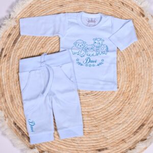 Een super schattige 2 delig setje met naam en boerderij dieren gedrukt in kleur naar keuze