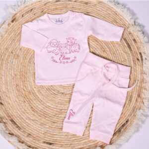 Een super schattige 2 delig setje met naam en boerderij dieren gedrukt in kleur naar keuze
