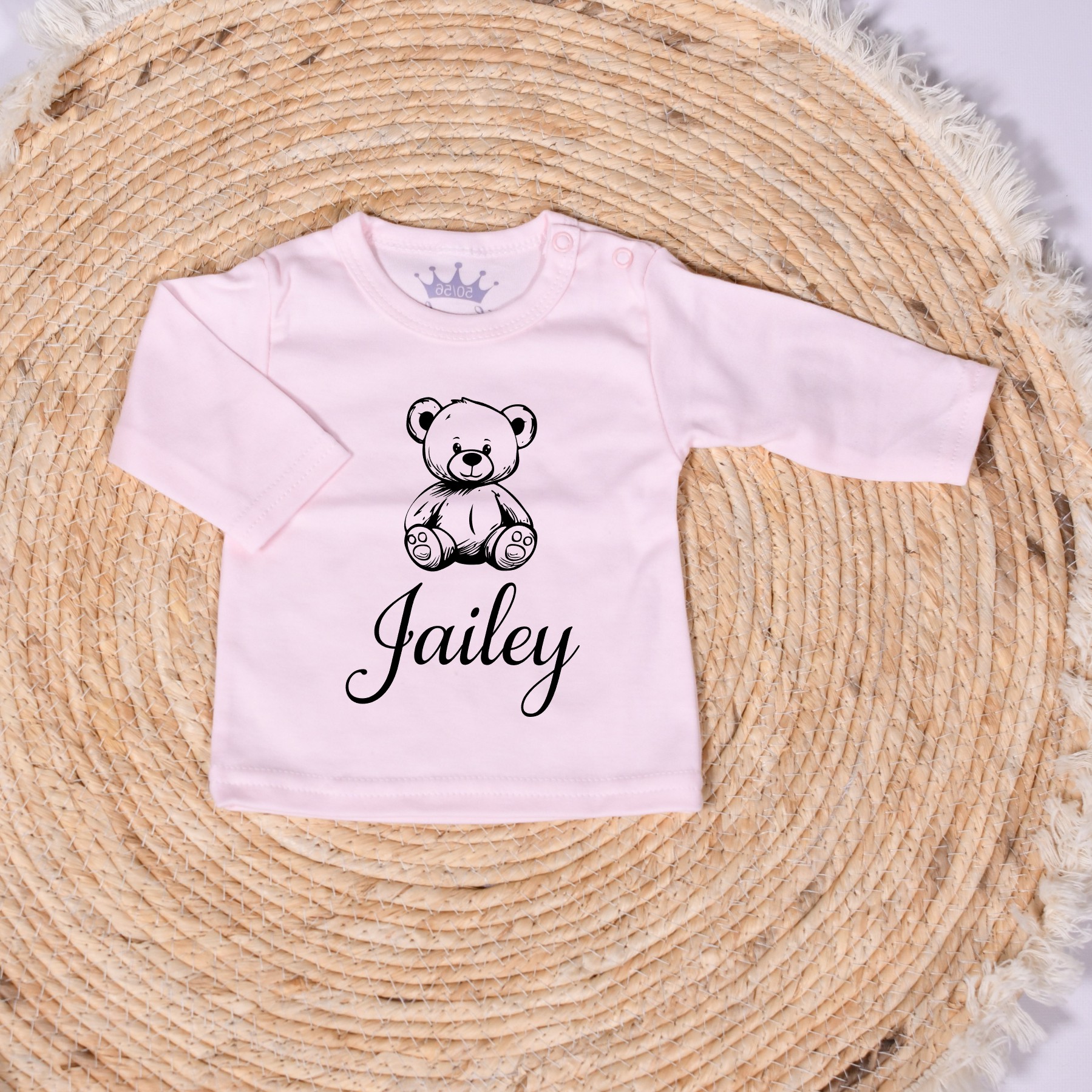 Dit leuke shirtje is er in wit, zwart, zand, roze en licht blauw. Maat 50/56 t/m 86/92