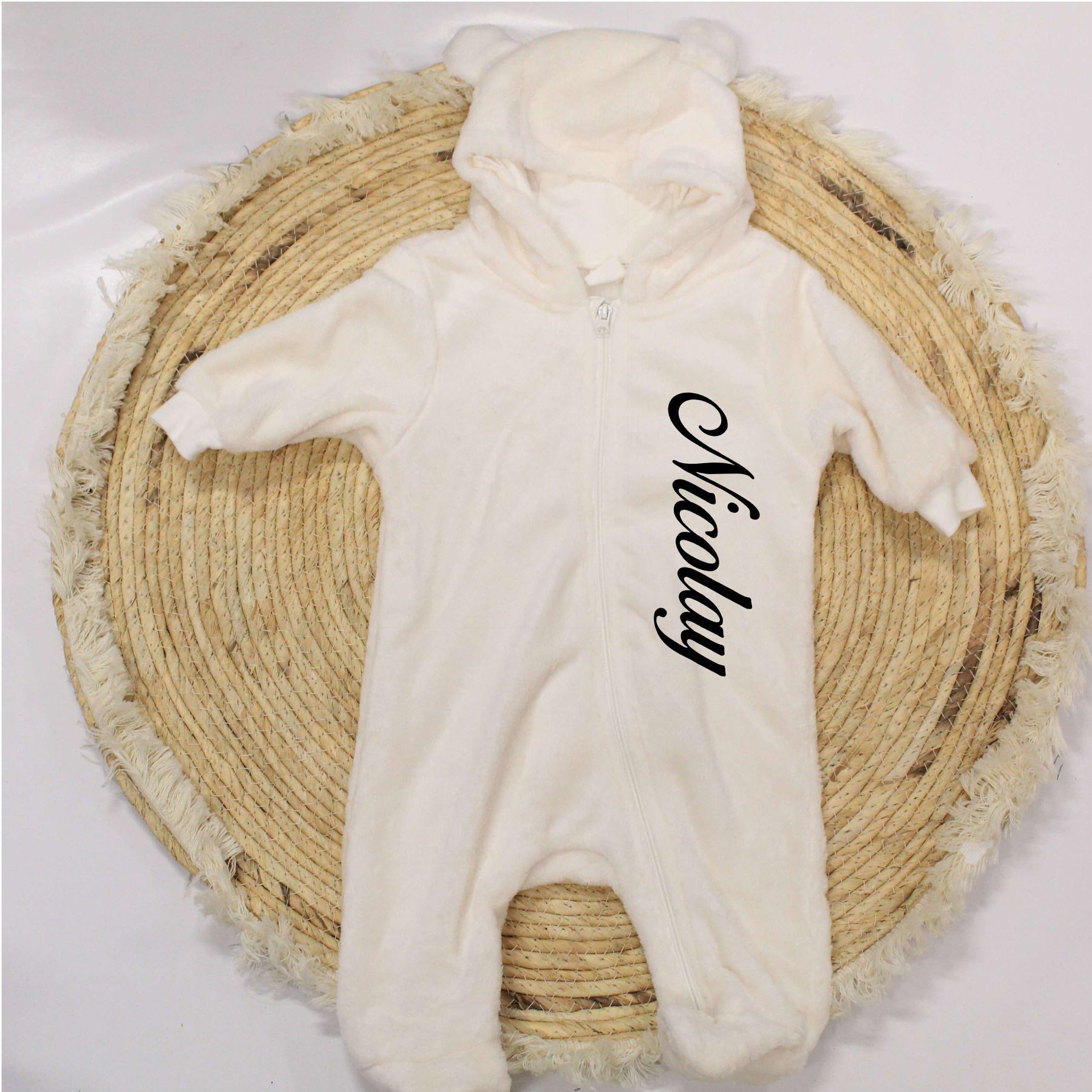 Een super schattig wit/creme teddy pakje met naam gedrukt in kleur naar keuze.